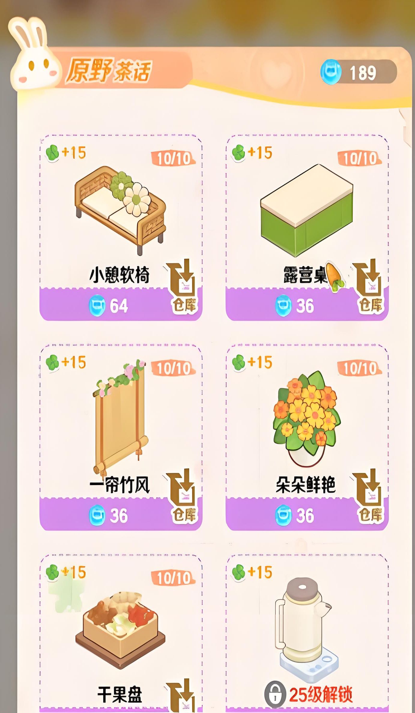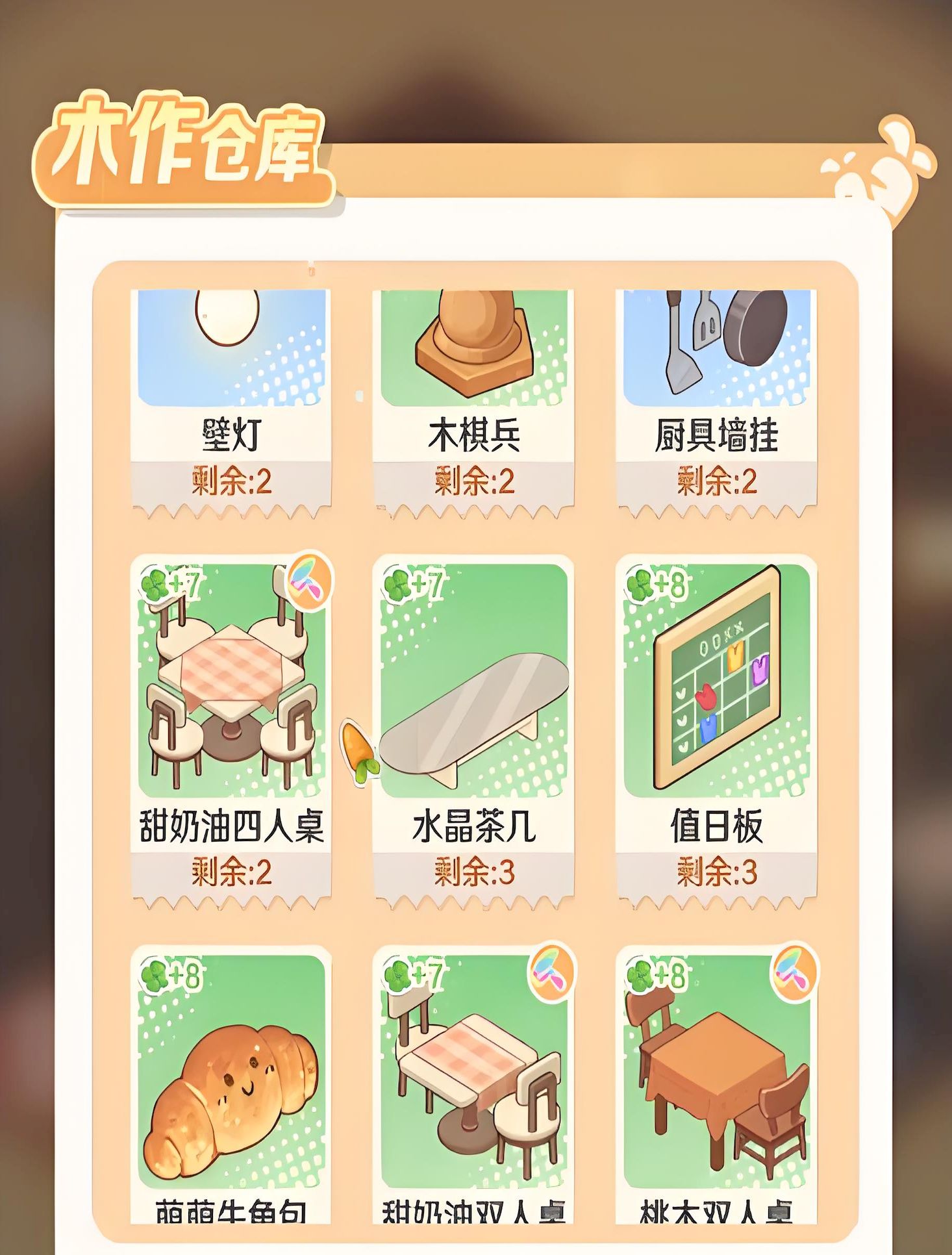 5、按正確方式合成的家具會立即放入倉庫,這樣做可優(yōu)化店鋪環(huán)境讓其更舒適溫馨,建議不隨意擺放家具,需時(shí)從倉庫拖動高等級家具。