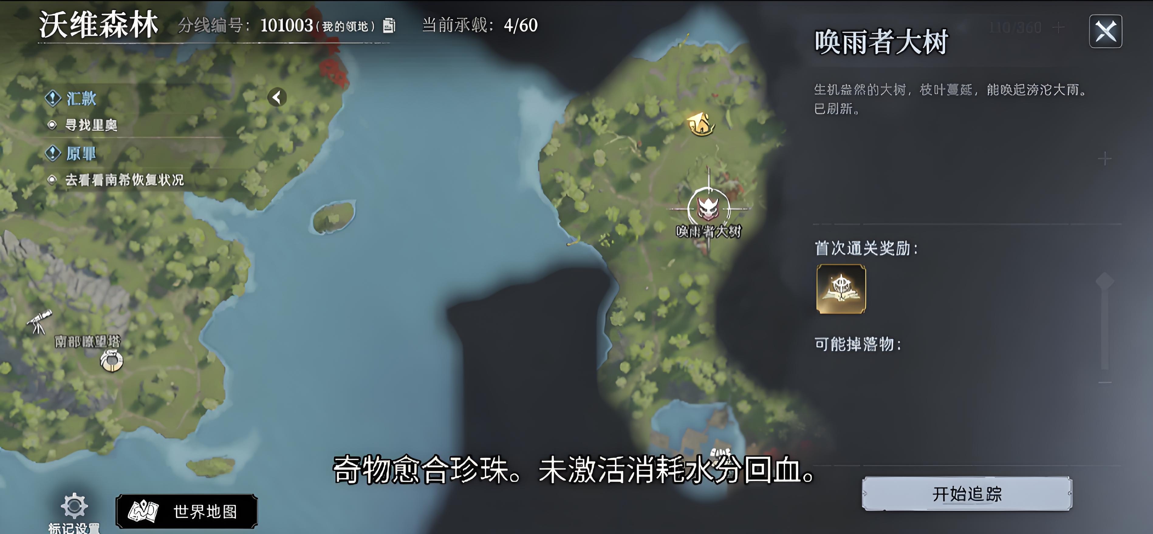 1、獲取愈和珍珠需先找大首領(lǐng)喚雨者大樹,玩家要打開地圖找到目標(biāo),等級(jí)需滿足20級(jí)以上,還需準(zhǔn)備火屬性武器和水分補(bǔ)給品。