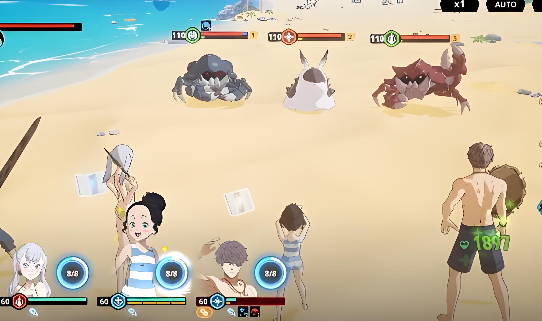 3、必殺技烤肉派對時間為所有己方角色恢復(fù)大量生命,還賦予后續(xù)數(shù)回合攻擊力提升狀態(tài),兼顧治療與輸出增益能扭轉(zhuǎn)局勢。