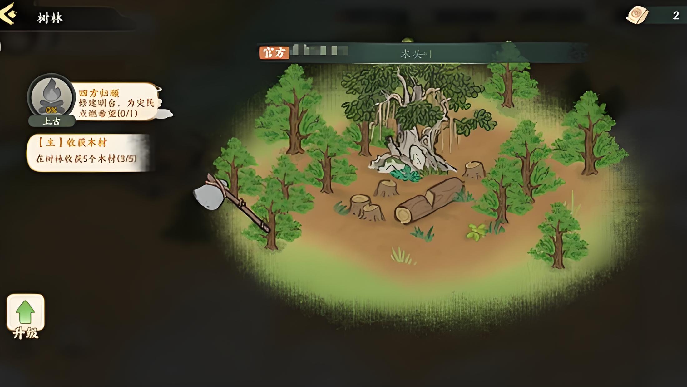 2、建造明臺需先按系統(tǒng)指引完成圖紙繪制,再前往伐木場用工具欄斧頭點(diǎn)擊五棵樹收集5根木材,材料齊備后返回廢墟處交互啟動建造動畫。