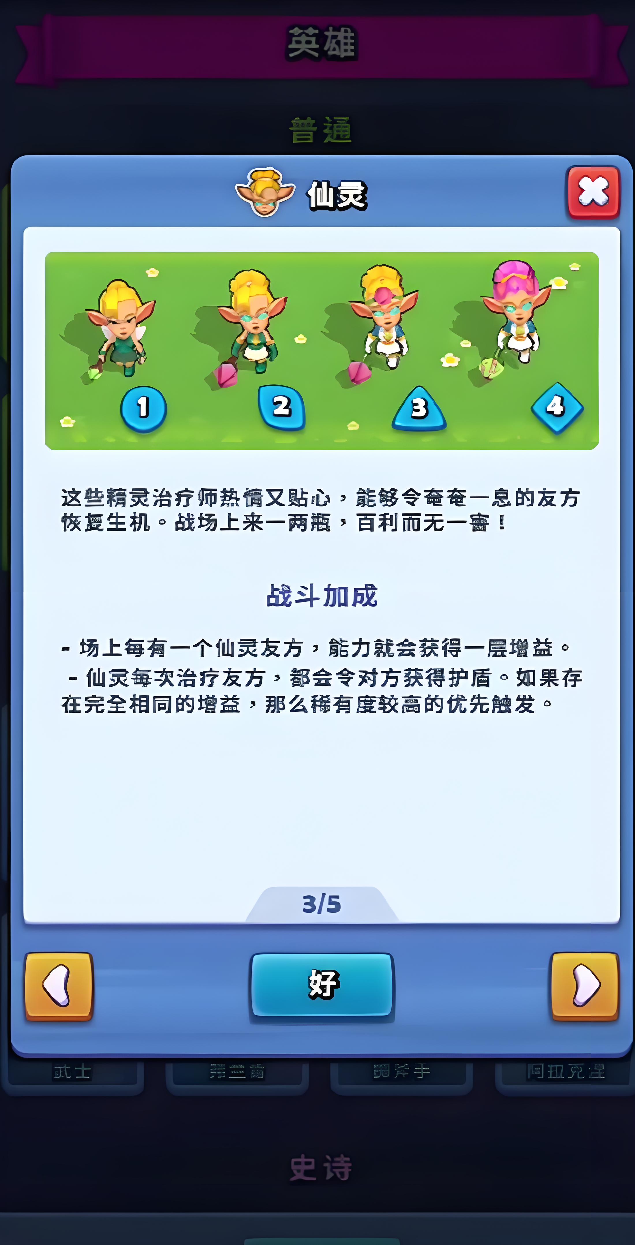 3、升級后獲增益,場上有仙靈系友軍時治療附加護(hù)盾,五級時護(hù)盾轉(zhuǎn)額外治療量,多仙靈陣容中后期作用大。