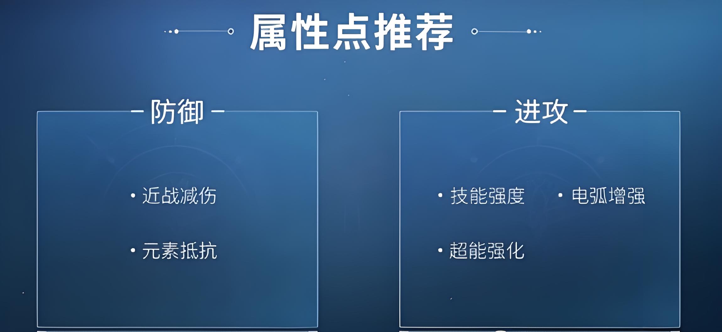 4、屬性選擇攻防側(cè)重不同,防御端優(yōu)先近戰(zhàn)減傷和元素抵抗,進(jìn)攻端則優(yōu)先技能強度電弧增強及超能強化強化電系傷害。