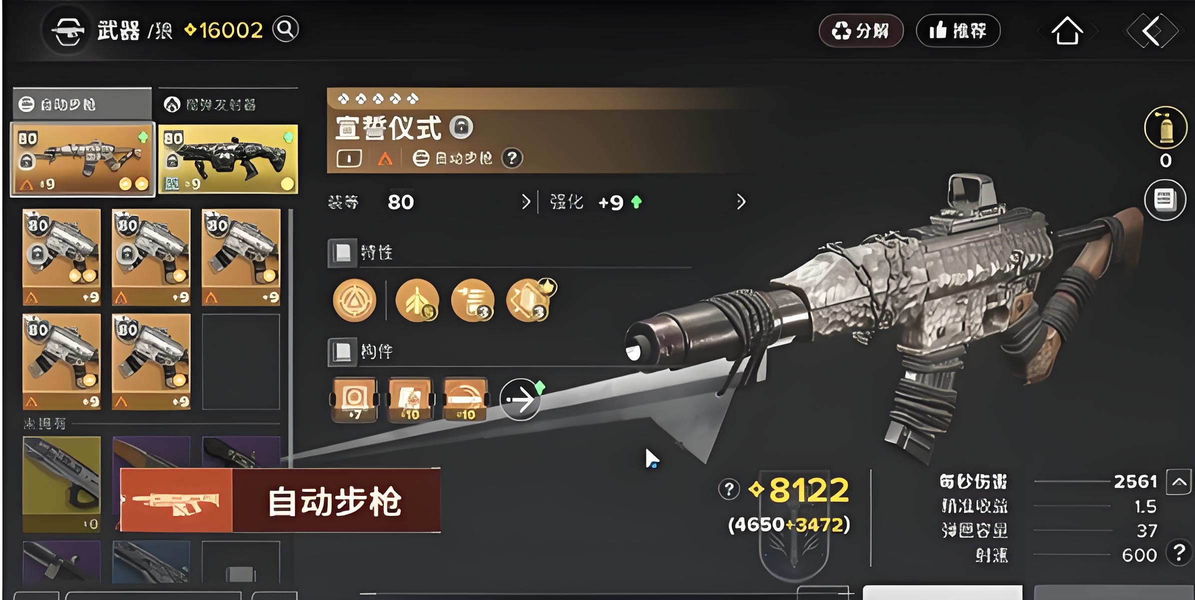 3、配裝推薦自動(dòng)步槍加榴彈發(fā)射器,武器可強(qiáng)化至80級(jí)加9,能有效提升每秒傷害和戰(zhàn)斗中的輸出能力。