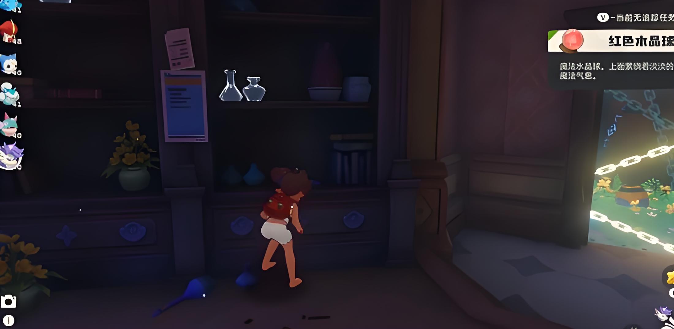 2、秘境中第一個房間柜子上可直接獲取黃顏色水晶球,第二個房間需提交紫色和綠色水晶球才能繼續(xù),提交前要確認(rèn)背包內(nèi)是否有對應(yīng)種類。