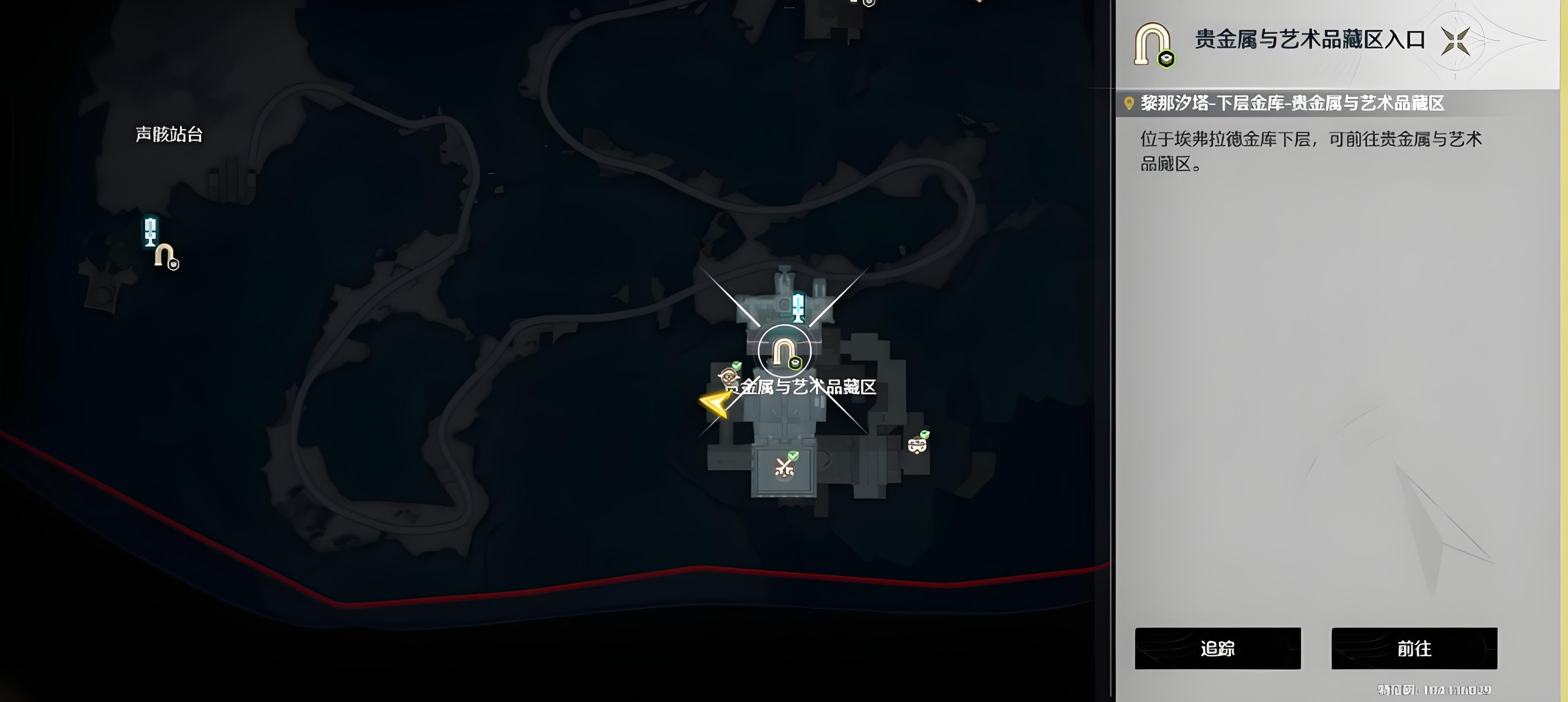 1、該成就需在貴金屬與藝術(shù)品藏館和聲骸藏館兩個(gè)區(qū)域完成,首先要前往埃弗拉德金庫(kù)下層的貴金屬與藝術(shù)品藏區(qū),此區(qū)域是觸發(fā)成就的關(guān)鍵地點(diǎn)。