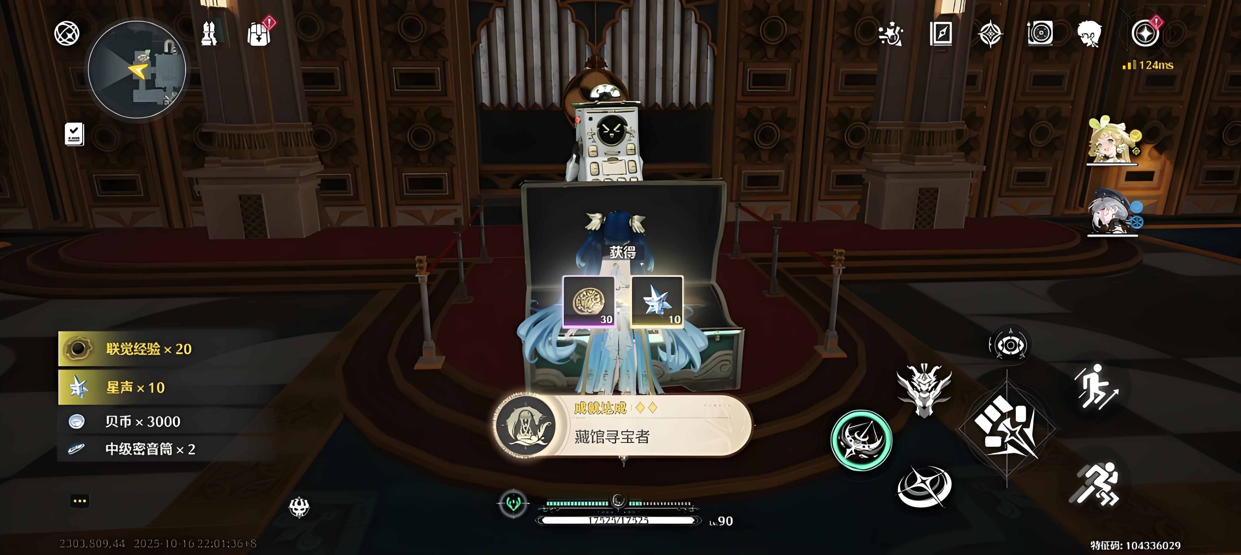 4、成功回答完四個(gè)機(jī)器人的所有問(wèn)題后,不僅會(huì)有隱藏寶箱生成,還會(huì)直接彈出藏館尋寶者成就的解鎖提示,同時(shí)同步更新該成就的完成進(jìn)度。
