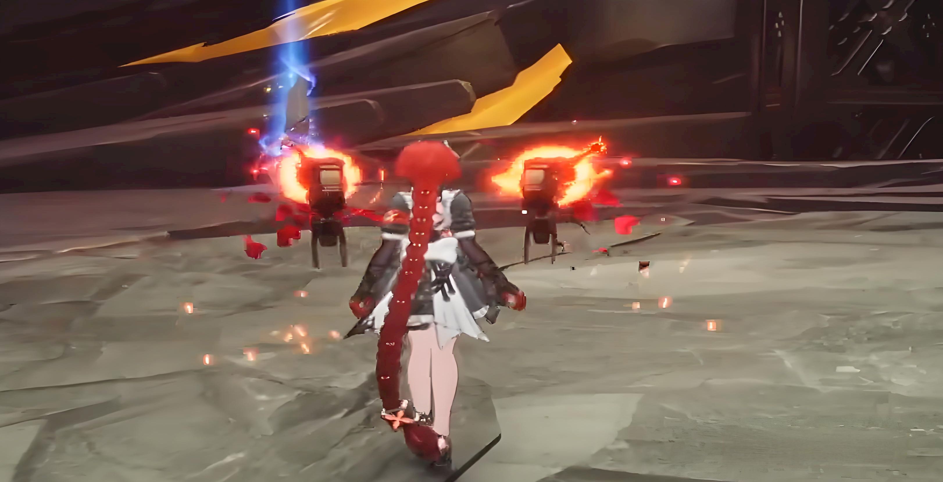 3、第一個技能可召喚清掃機(jī)機(jī)器人,機(jī)器人會圍繞她旋轉(zhuǎn)并發(fā)射射線,對周圍敵人造成持續(xù)火屬性傷害且傷害可疊加,消滅敵人后還能回復(fù)自身生命值。