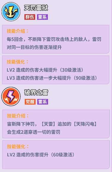 2、宙斯天罰雷獄技能固定回合降下雷罰攻擊敵人,對同一目標(biāo)傷害逐步疊加,等級提升后能大幅增強(qiáng)單次攻擊傷害。