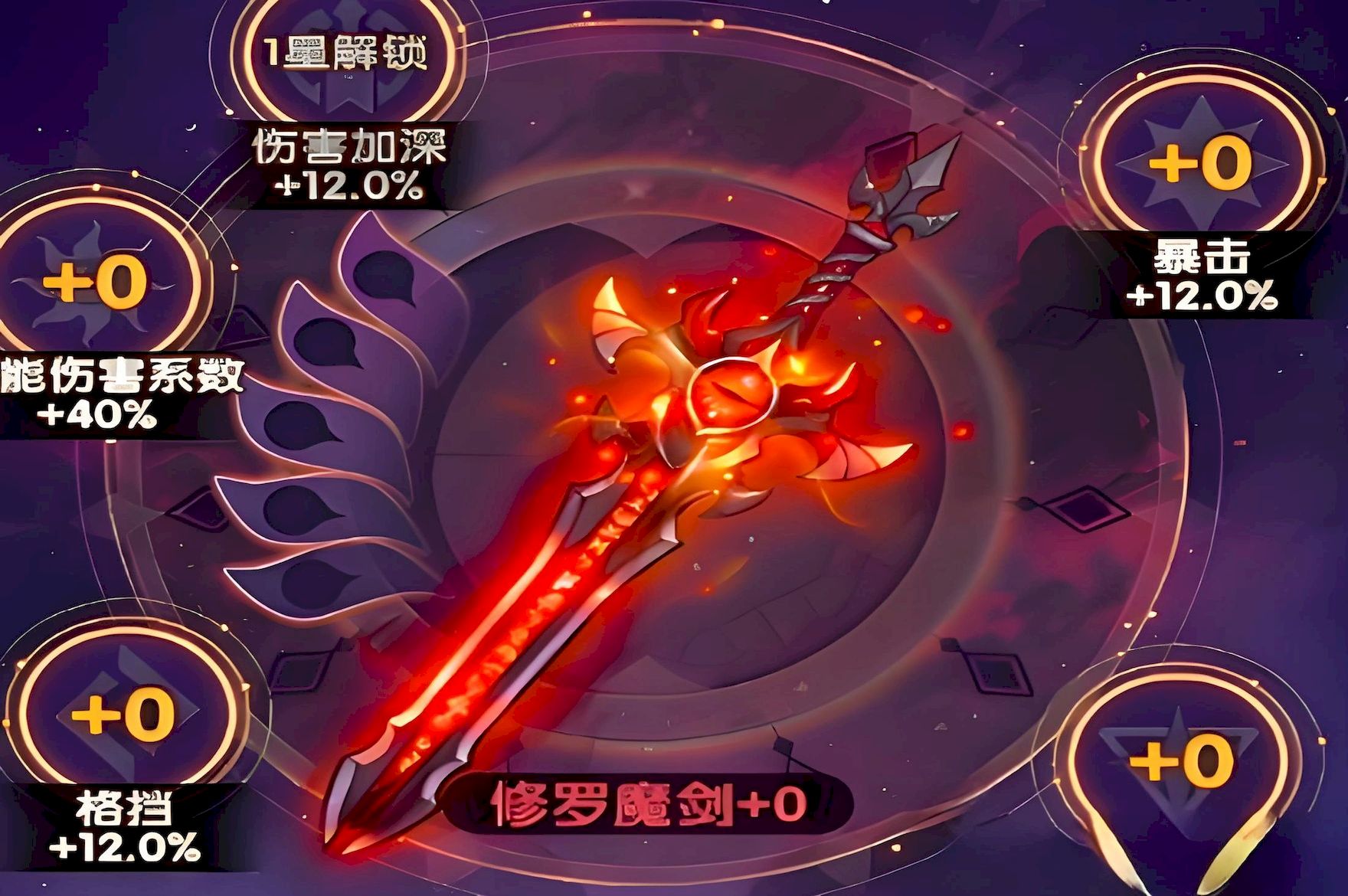 3、修羅魔劍有五個(gè)槽位涵蓋傷害提升魔法格擋暴擊率抗暴擊技能強(qiáng)度,適配技能輸出或暴擊流派陣容。