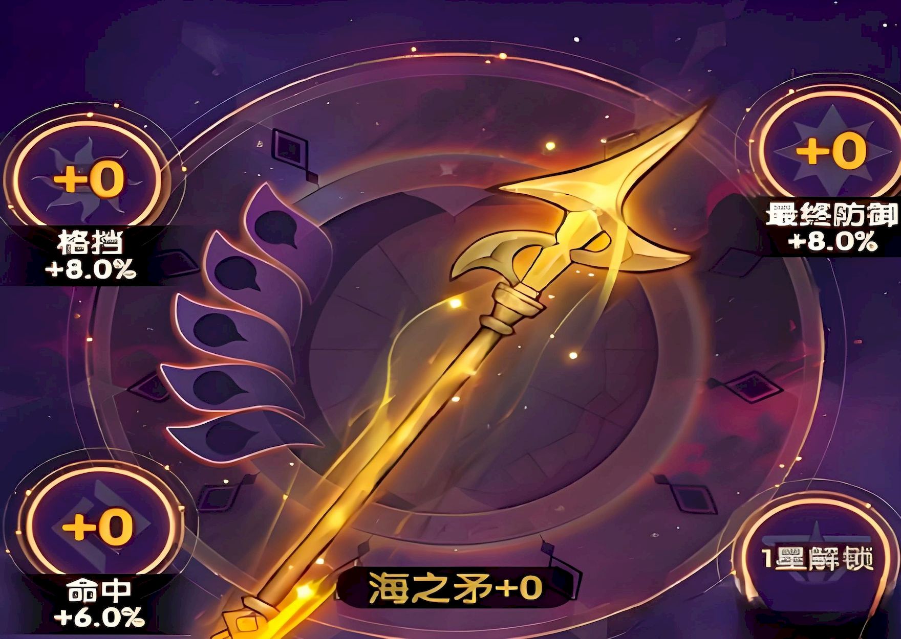 4、海之矛四個(gè)槽位對(duì)應(yīng)格擋命中最終防御最終攻擊,屬性提升幅度穩(wěn)定兼容性強(qiáng),適合新人前期過(guò)渡。