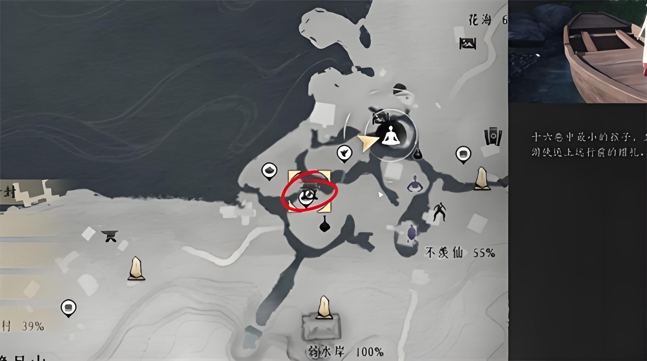 2、到達(dá)豐禾村后尋找關(guān)鍵NPC燕錢,角色常駐村子旁邊的功德池旁,外觀有明顯江湖商賈風(fēng)格容易辨認(rèn),靠近后觀察頭頂交互提示確認(rèn)目標(biāo)。