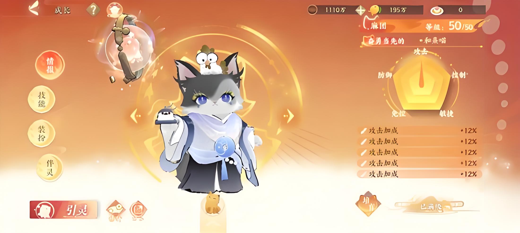 4、四十級(jí)貓技能分兩類,貓一提升非劉娥天命下群體奶治療系數(shù)與受治療量,貓二提高毒傷敵方達(dá)二十層流漪時(shí)增攻最高角色毒傷。