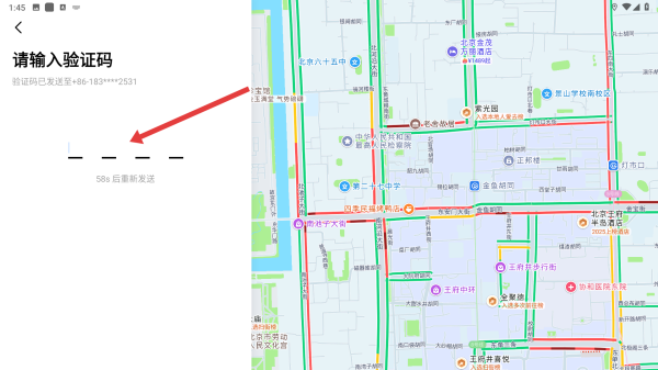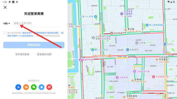 4、輸入獲取到的驗證碼,完成登錄操作,之后可享受高德地圖的相關(guān)服務(wù),數(shù)據(jù)也能實現(xiàn)云上存儲不丟失。