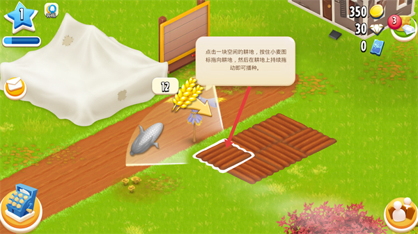 1、在空閑耕地上播種時,可選擇不同的種子,點擊耕地,按住小范圍移動耕地,然后在耕地上持續(xù)滑動,完成播種,開啟種植。