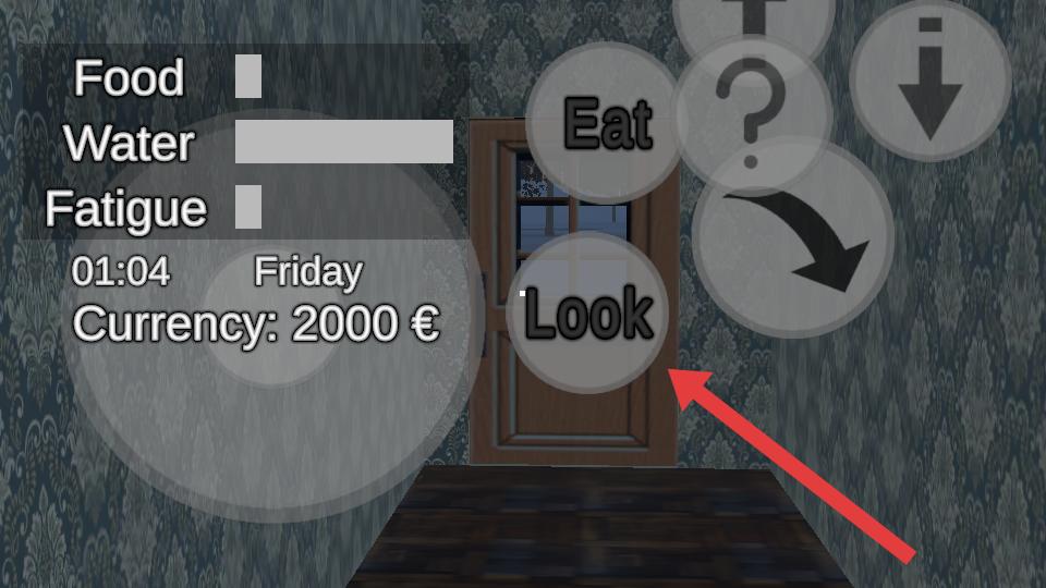 2、進(jìn)入游戲場(chǎng)景后,界面有Eat、Look等按鈕,點(diǎn)擊Look,可以查看周圍環(huán)境,了解所處的地方。