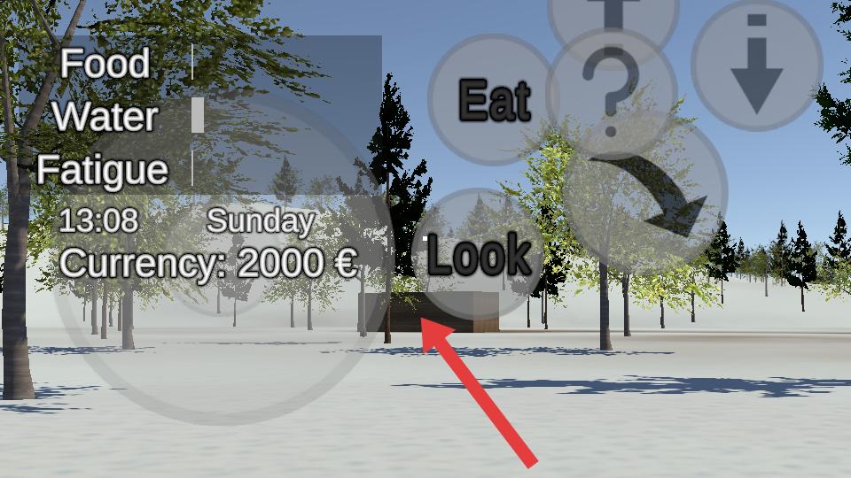 4、處于外部環(huán)境時(shí),都能通過(guò)Look按鈕觀察環(huán)境,比如戶外雪地場(chǎng)景,看看周圍有沒(méi)有可利用的資源或需要注意的事物。