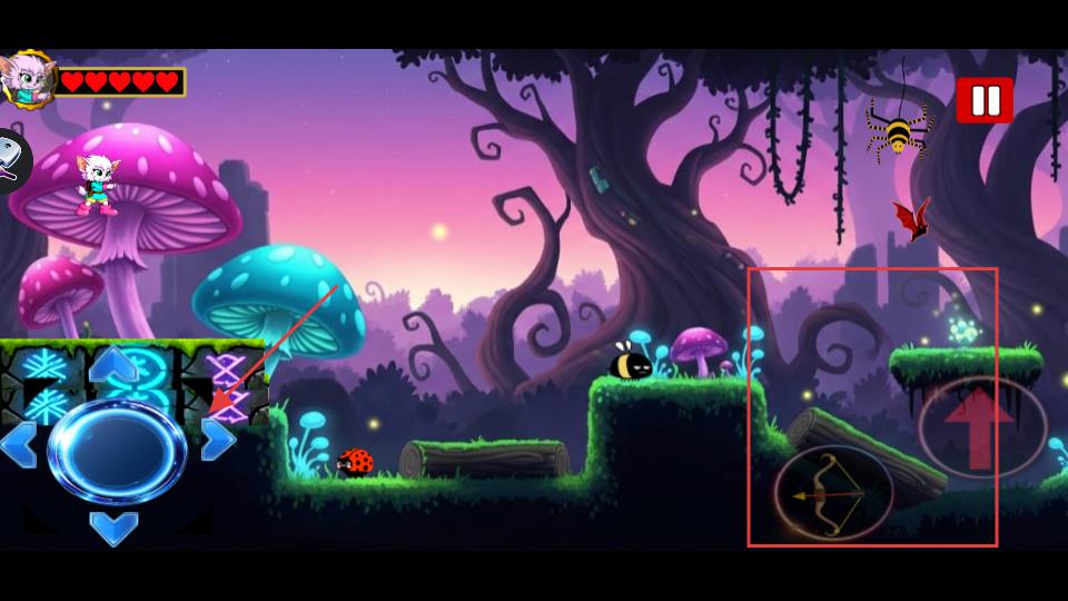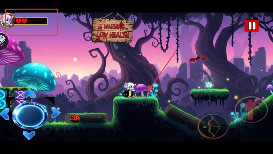 1、基礎移動操作:借助左側虛擬搖桿控制角色在蘑菇森林移動,關注上方生命值,避開蜘蛛、蝙蝠等敵人,安全探索場景。簡潔直觀的操作方式讓玩家快速進入游戲狀態(tài)。