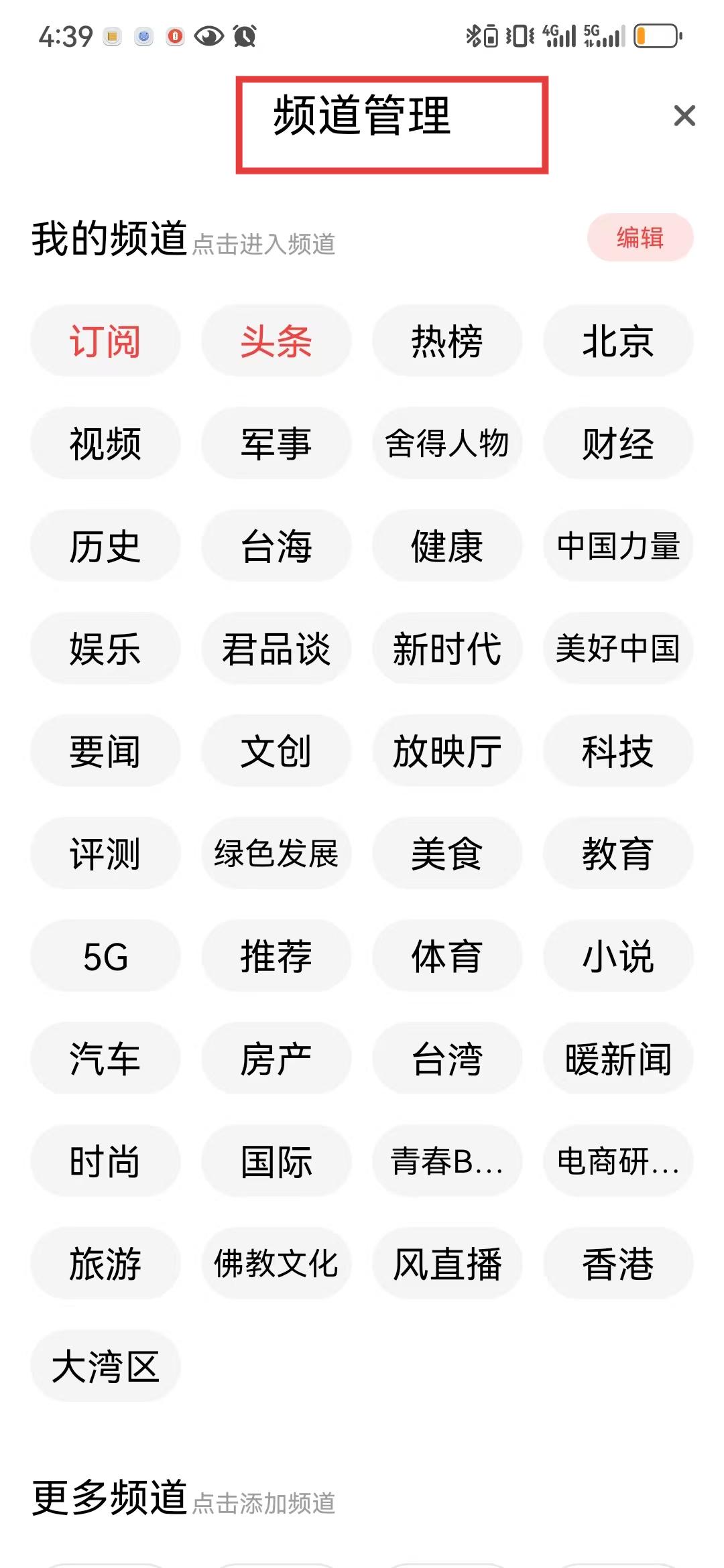 1、打開APP進(jìn)入頻道管理,按需選擇感興趣頻道,如軍事、財(cái)經(jīng)等瀏覽新聞資訊,遇到想收藏的文章、視頻等內(nèi)容,進(jìn)入其詳情頁面準(zhǔn)備進(jìn)行收藏操作。