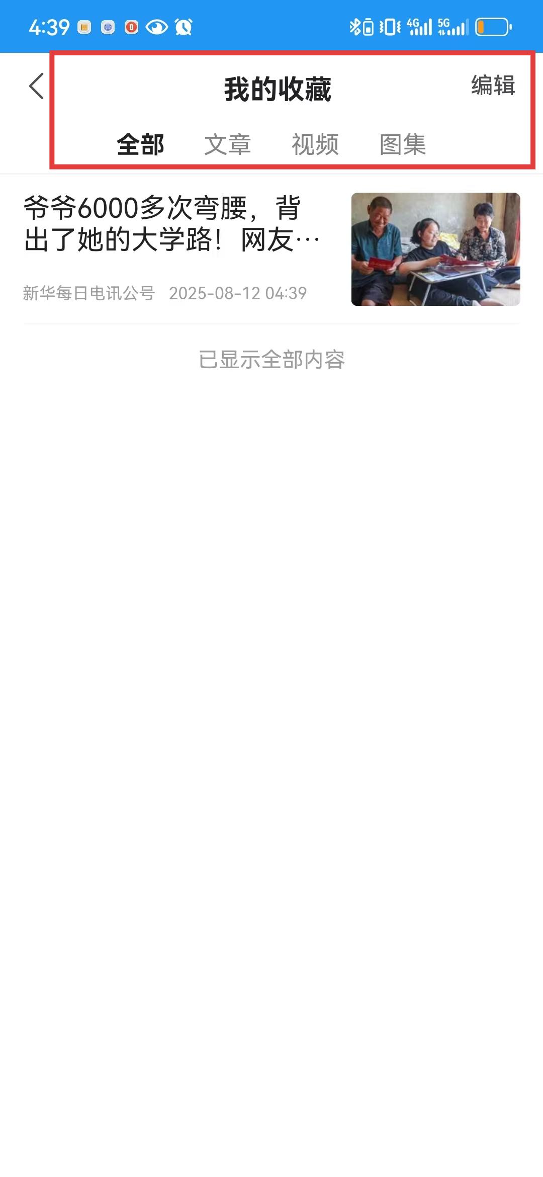 3、點(diǎn)擊APP底部相關(guān)個(gè)人中心或我的入口,找到我的收藏板塊進(jìn)入,這里可按全部、文章、視頻等分類查看收藏內(nèi)容,快速找到之前收藏的資訊隨時(shí)瀏覽。