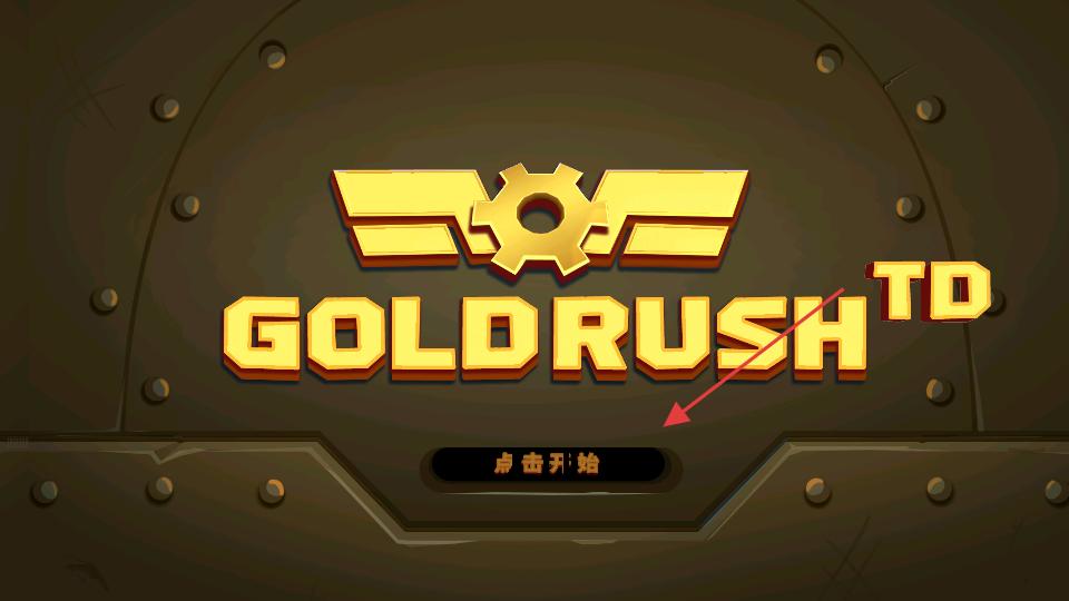 1、游戲啟動界面,GOLDRUSH TD的金色標題搭配齒輪與翅膀元素的標志,點擊下方【點擊開始】進入游戲。