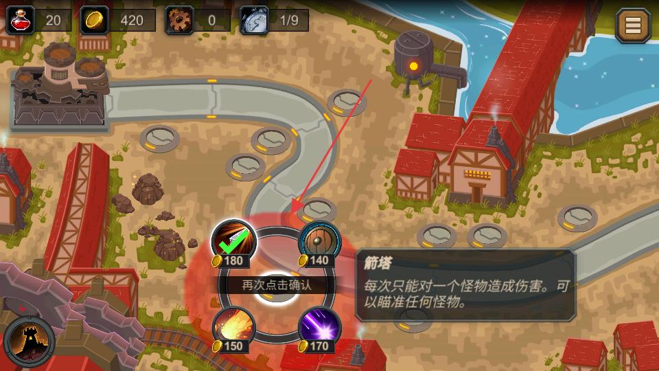 3、建造塔樓時,玩家可選擇箭塔,箭塔的特點是每次攻擊單個怪物,不過能瞄準任何怪物。