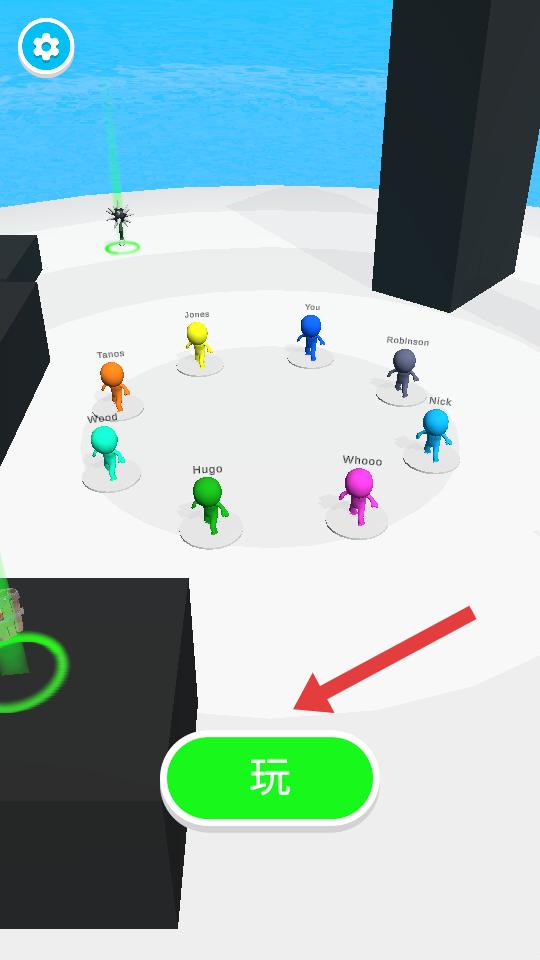 1、進(jìn)入游戲,能看到多個(gè)彩色小人圍成一圈的界面,下方有玩按鈕,點(diǎn)擊后即可開啟游戲。