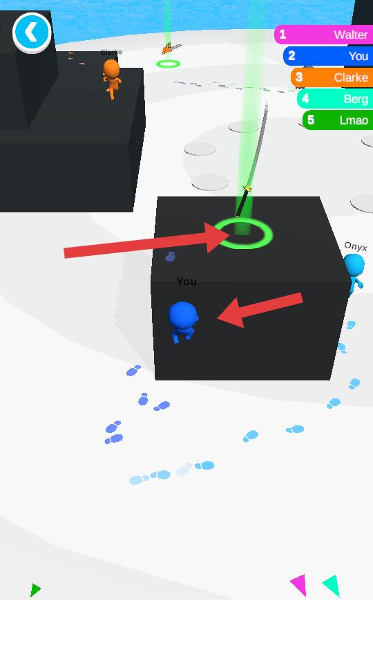 2、游戲開始后,操控自己的小人移動(dòng),去爭奪場景里綠色光圈內(nèi)的武器,拿到武器能增強(qiáng)自身能力。