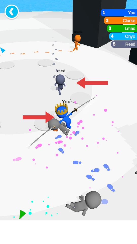 3、拿到武器后,可與其他小人進(jìn)行對抗,利用武器攻擊他們,把其他小人擊敗,爭取獲得更好的成績。