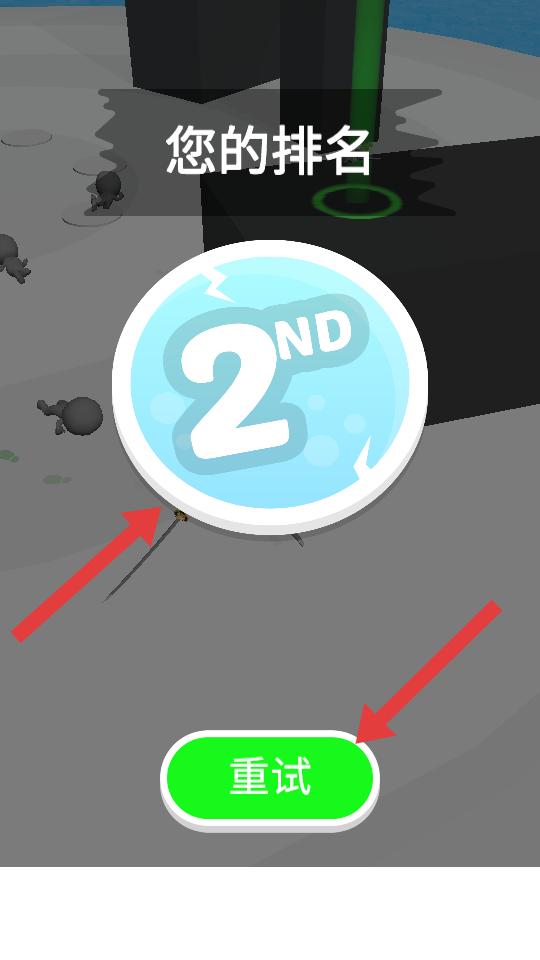 4、游戲結(jié)束后,會(huì)顯示您的排名以及對應(yīng)的名次,若對排名不滿意,可點(diǎn)重試按鈕重新開始游戲。