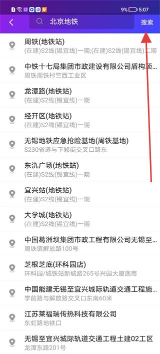 4、在搜索頁面輸入北京地鐵,點擊搜索,查看周鐵地鐵站、龍源路地鐵站等相關(guān)站點信息,了解地鐵站點分布。