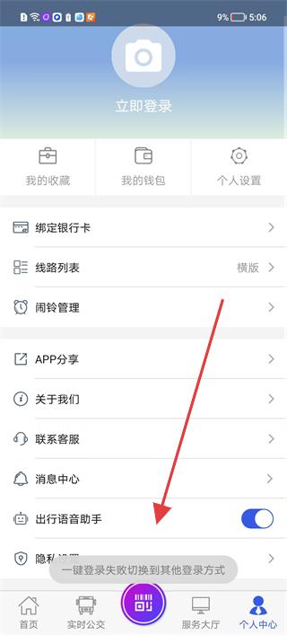 3、進入個人中心頁面查看我的收藏、我的錢包等功能,開啟出行語音助手,方便獲取出行語音提示。