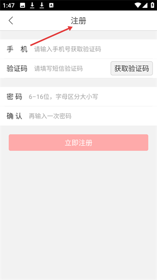 2、注冊界面需輸入手機(jī)號獲取驗(yàn)證碼,設(shè)置6、16位區(qū)分大小寫的密碼并確認(rèn),完成后點(diǎn)擊立即注冊即可。
