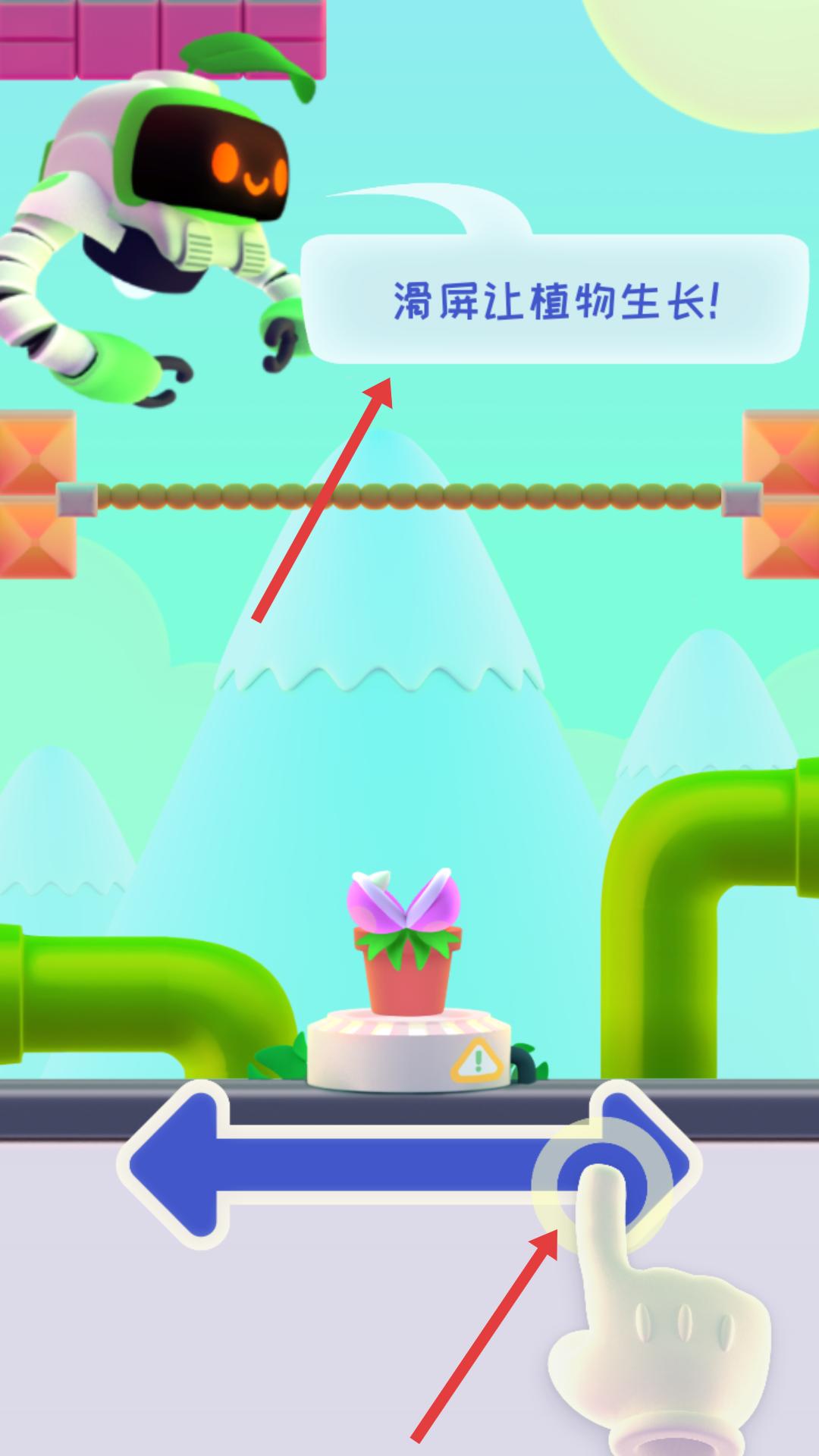 1、界面提示滑屏讓植物生長,通過滑動屏幕控制植物生長,開啟植物生長的游戲進(jìn)程,感受操作的樂趣。