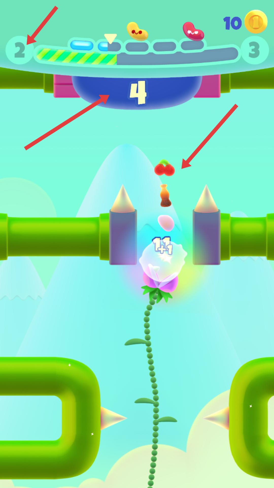 2、植物生長過程中會遇到各種物品,如櫻桃等,同時(shí)注意上方的數(shù)字和進(jìn)度條,讓植物在合適的時(shí)機(jī)生長獲取更多分?jǐn)?shù)。