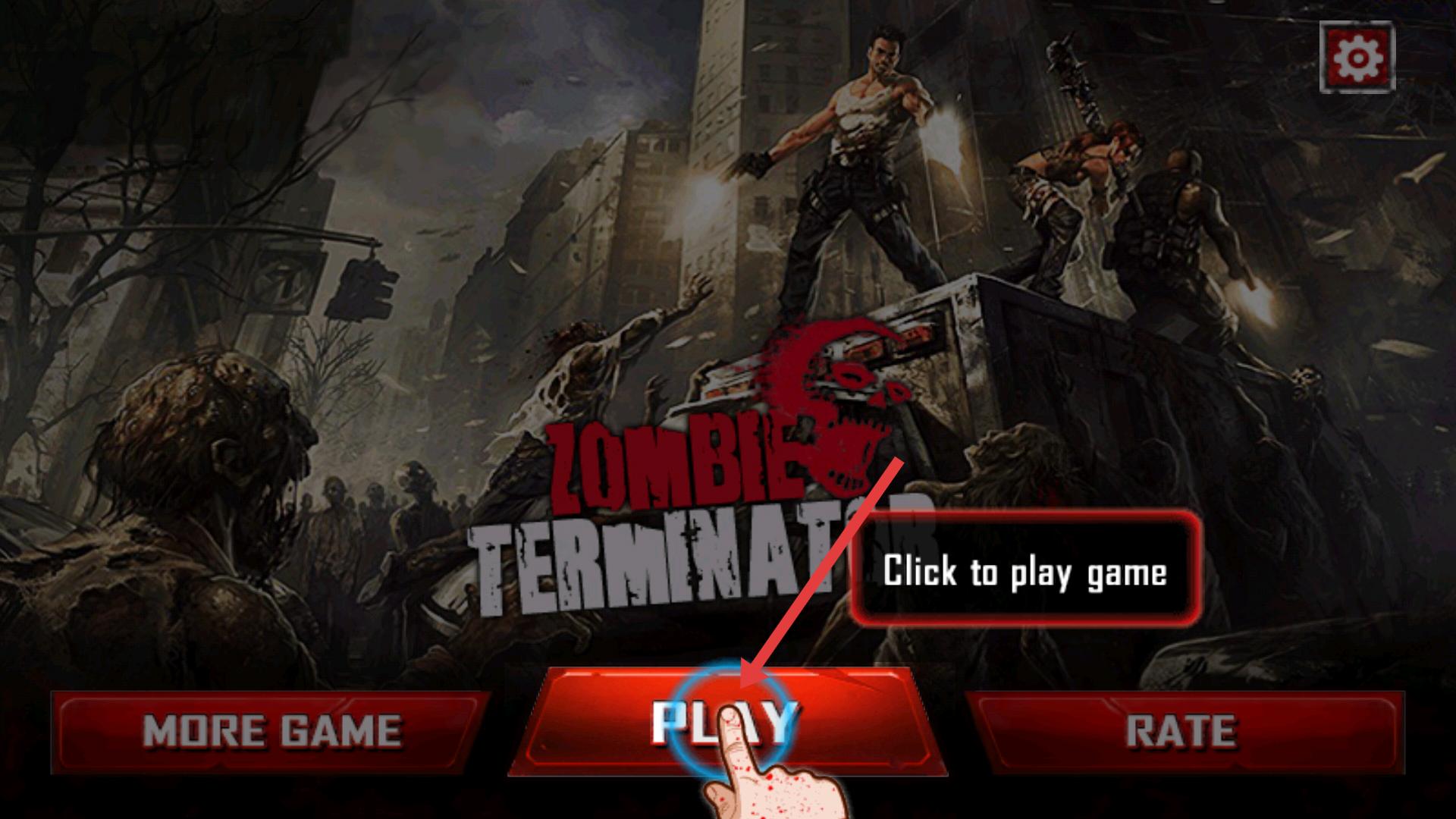 1、界面顯示游戲標題,點擊紅色PLAY按鈕,進入游戲,開啟消滅僵尸的任務,準備應對僵尸的襲擊。