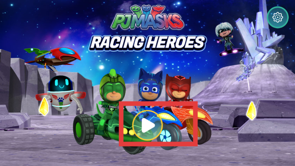 1、玩家下載游戲之后然后點擊進入,在游戲主界面點擊中間的播放按鈕,進入睡衣小英雄賽車英雄的游戲。