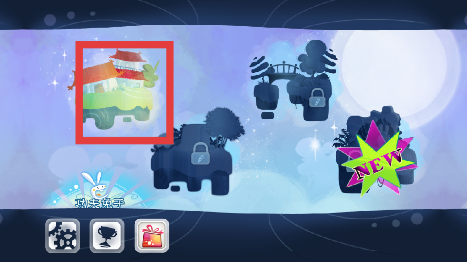 1、玩家下載游戲之后然后點擊進(jìn)入,在游戲主界面點擊已解鎖的關(guān)卡如紅框內(nèi)的關(guān)卡,進(jìn)入功夫兔子的游戲關(guān)卡場景。