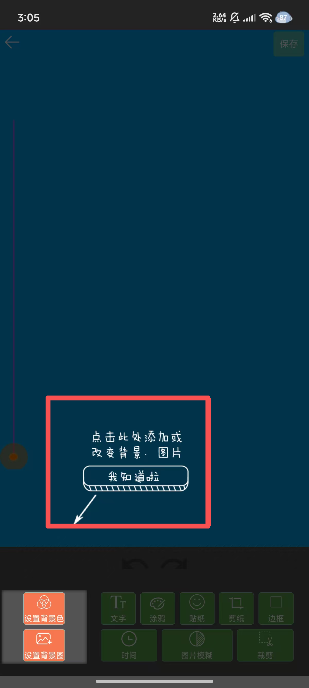 2、接著會(huì)出現(xiàn)點(diǎn)擊此處添加或改變背景圖片的提示,點(diǎn)擊我知道啦,進(jìn)行背景圖片的設(shè)置。