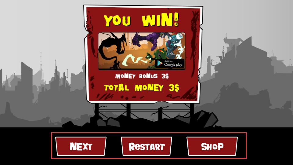 3、當(dāng)把對手的血量全部打空,就會觸發(fā)勝利結(jié)算界面,能獲得金錢獎勵,之后可以點擊Next進(jìn)入下一關(guān),或者去商店用金錢強化角色。