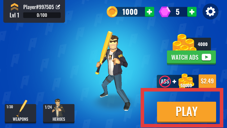1、玩家下載游戲之后然后點(diǎn)擊進(jìn)入游戲,在游戲主界面點(diǎn)擊PLAY按鈕,進(jìn)入止痛藥大逃殺游戲。
