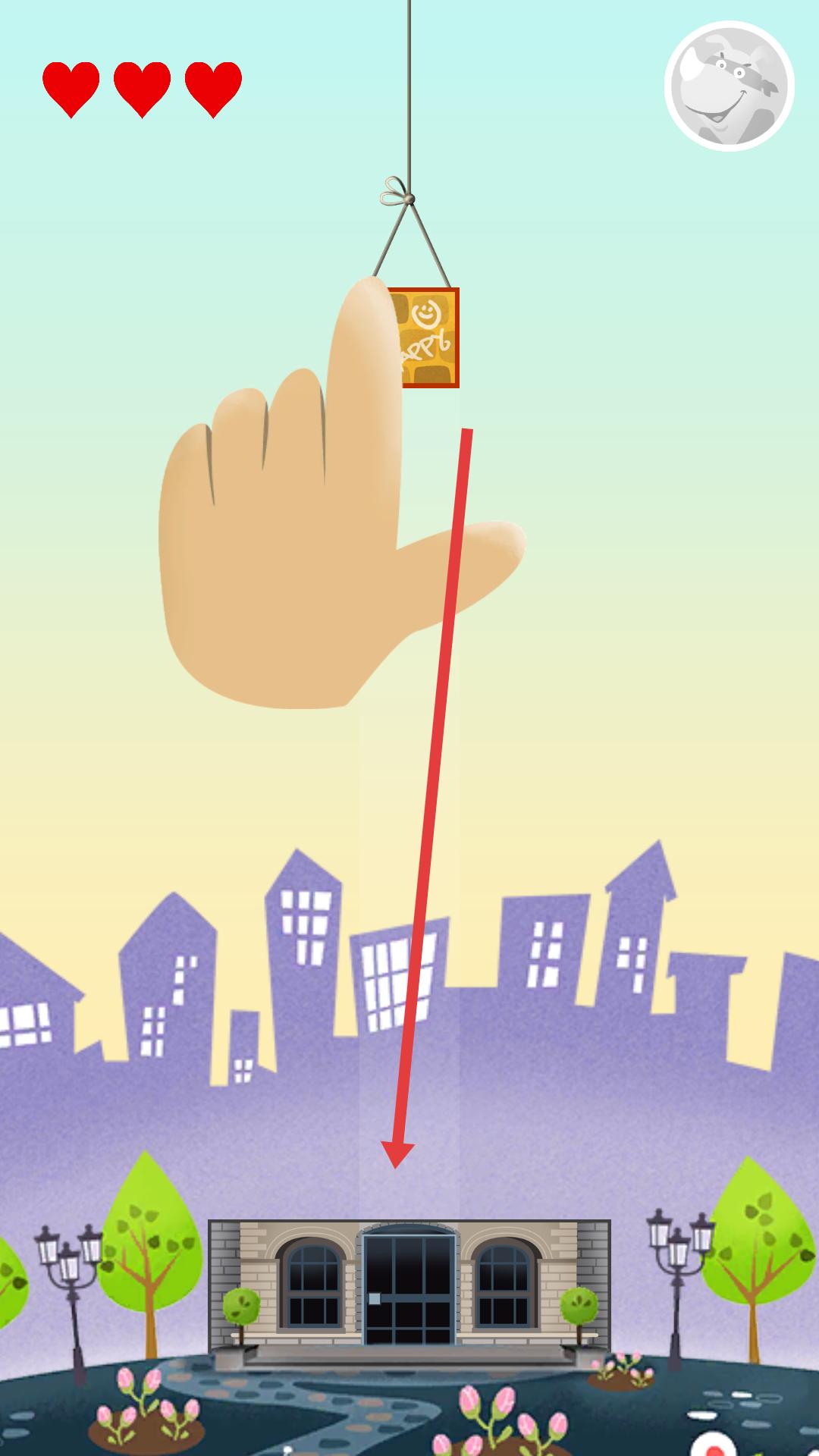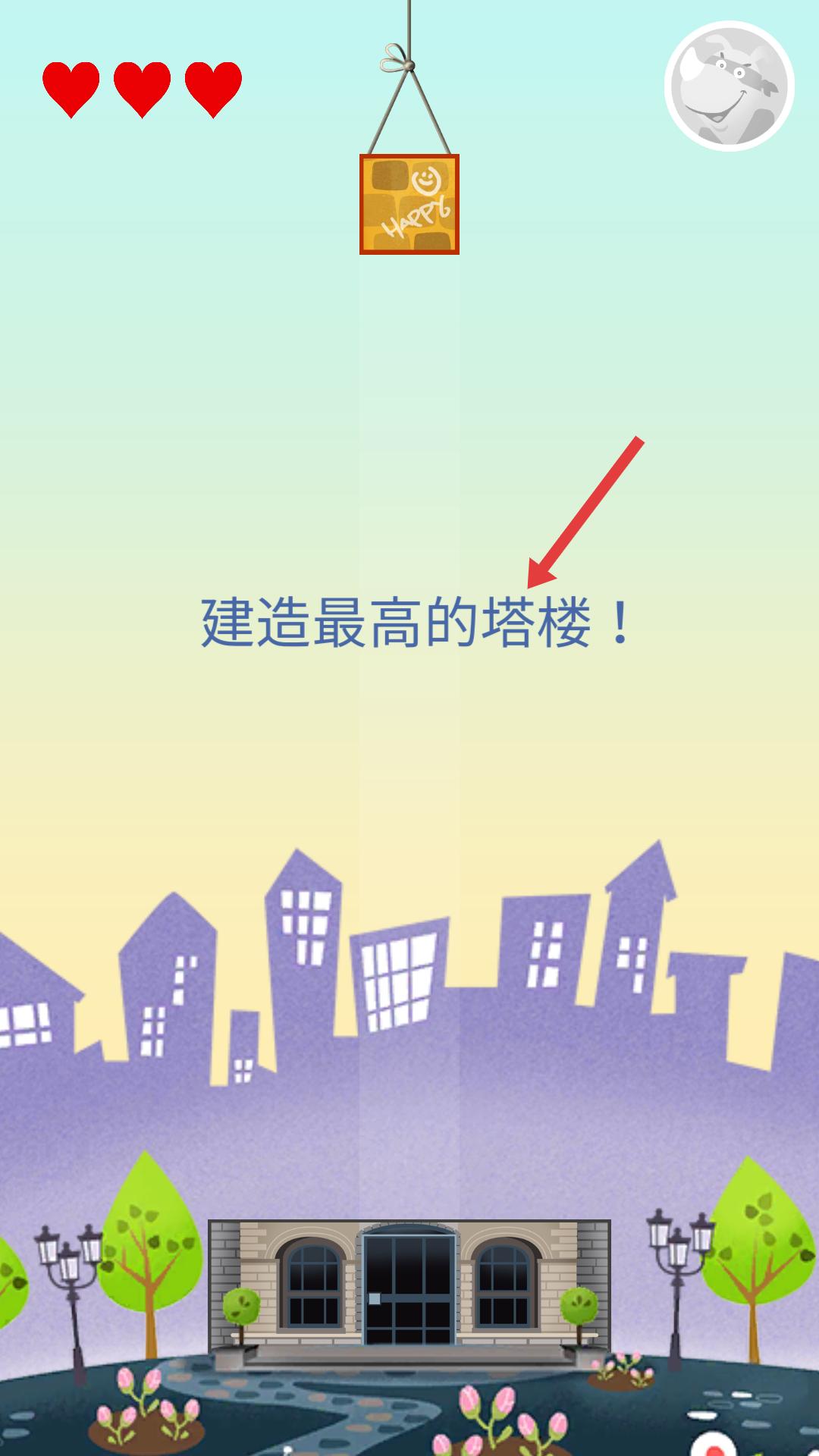2、當(dāng)懸掛的方塊下降到合適位置時點擊屏幕,讓方塊平穩(wěn)放置在下方建筑或已搭建的方塊上,逐步加高塔樓。