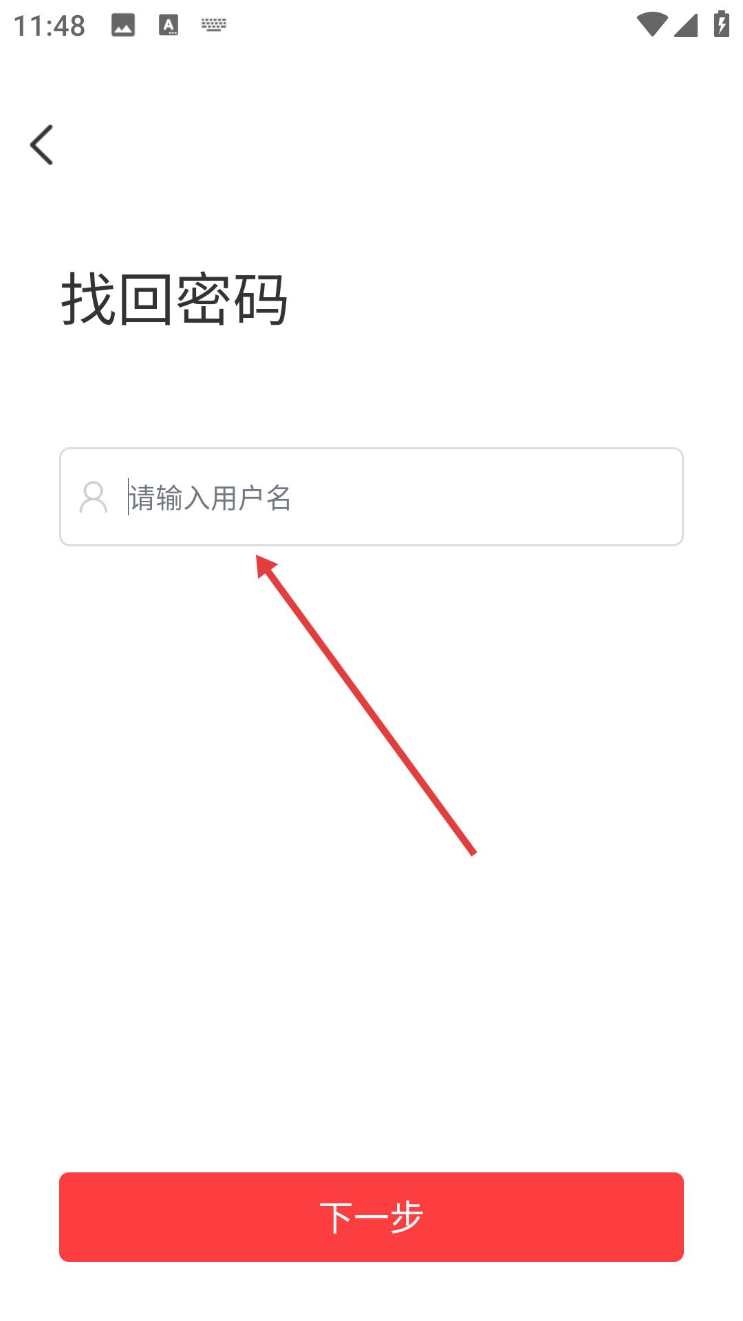 4、若忘記密碼在登錄頁面點(diǎn)擊忘記密碼,進(jìn)入找回密碼頁面,輸入用戶名點(diǎn)擊下一步,按照提示流程找回密碼,以便順利登錄。