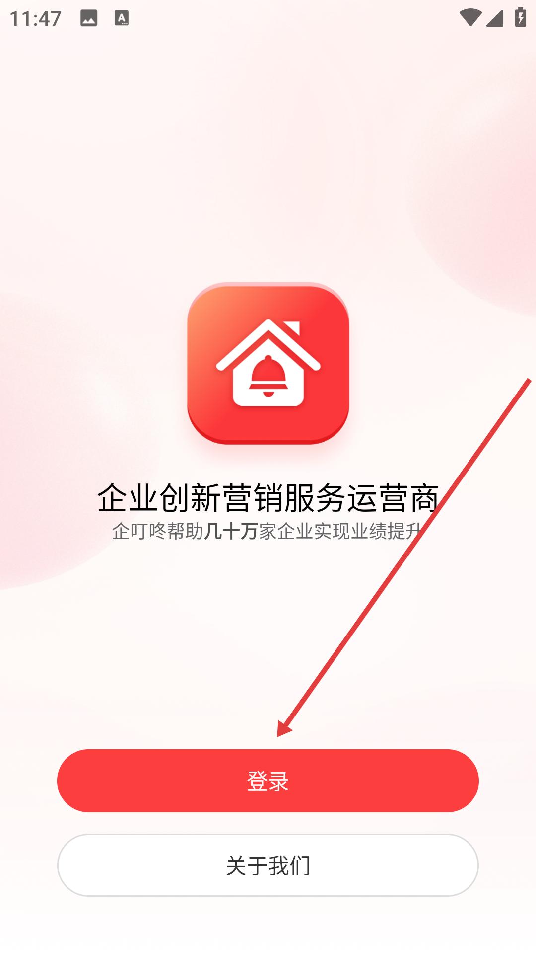 2、進(jìn)入企叮咚介紹頁面,看到企業(yè)創(chuàng)新營銷服務(wù)運(yùn)營商等介紹,點(diǎn)擊登錄進(jìn)入登錄頁面,準(zhǔn)備進(jìn)行賬號(hào)登錄操作。
