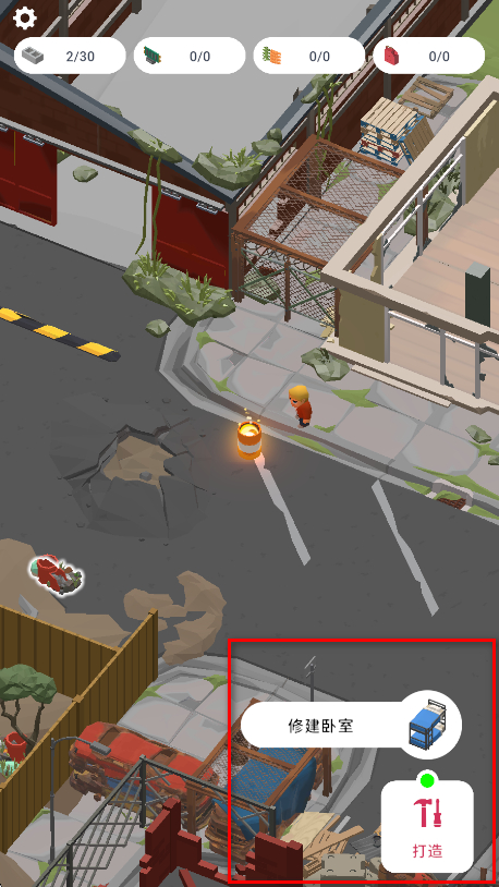 4、積累足夠資源后,可進(jìn)行建造,比如提示修建臥室時(shí),點(diǎn)擊打造按鈕,就能開展建造工作,逐步建設(shè)自己的生存空間。