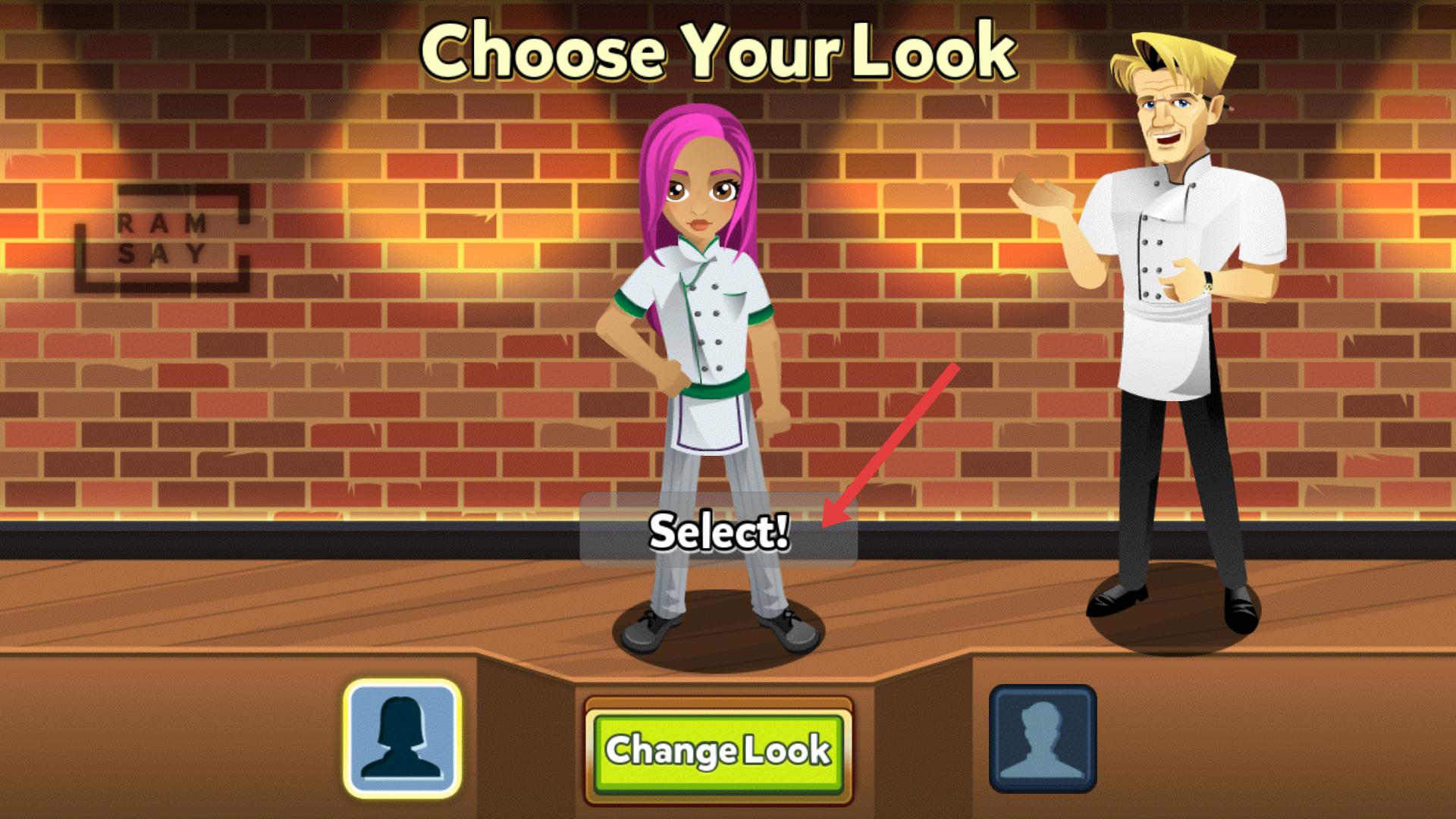 1、在角色選擇界面點(diǎn)擊Select按鈕,選定粉色頭發(fā)的廚師角色,進(jìn)入廚房場景,準(zhǔn)備開始烹飪?nèi)蝿?wù)。