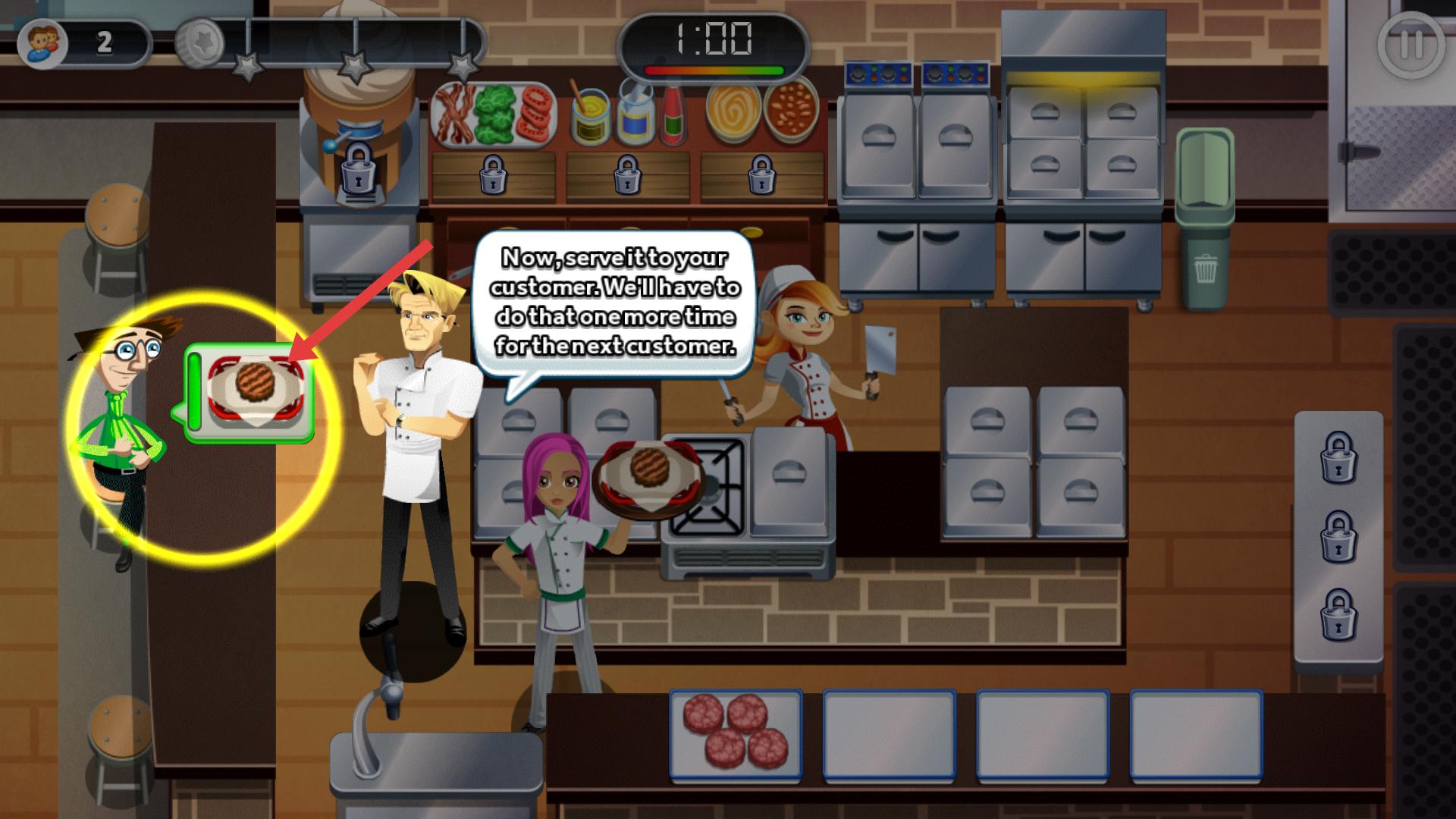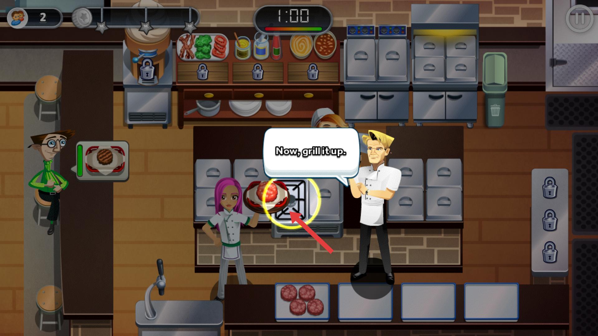 2、限時挑戰(zhàn)模式:在規(guī)定回合內(nèi)同時服務(wù)多位顧客,合理分配廚師技能冷卻時間,運(yùn)用加速道具與團(tuán)隊(duì)協(xié)作確保所有訂單準(zhǔn)時完成避免差評。