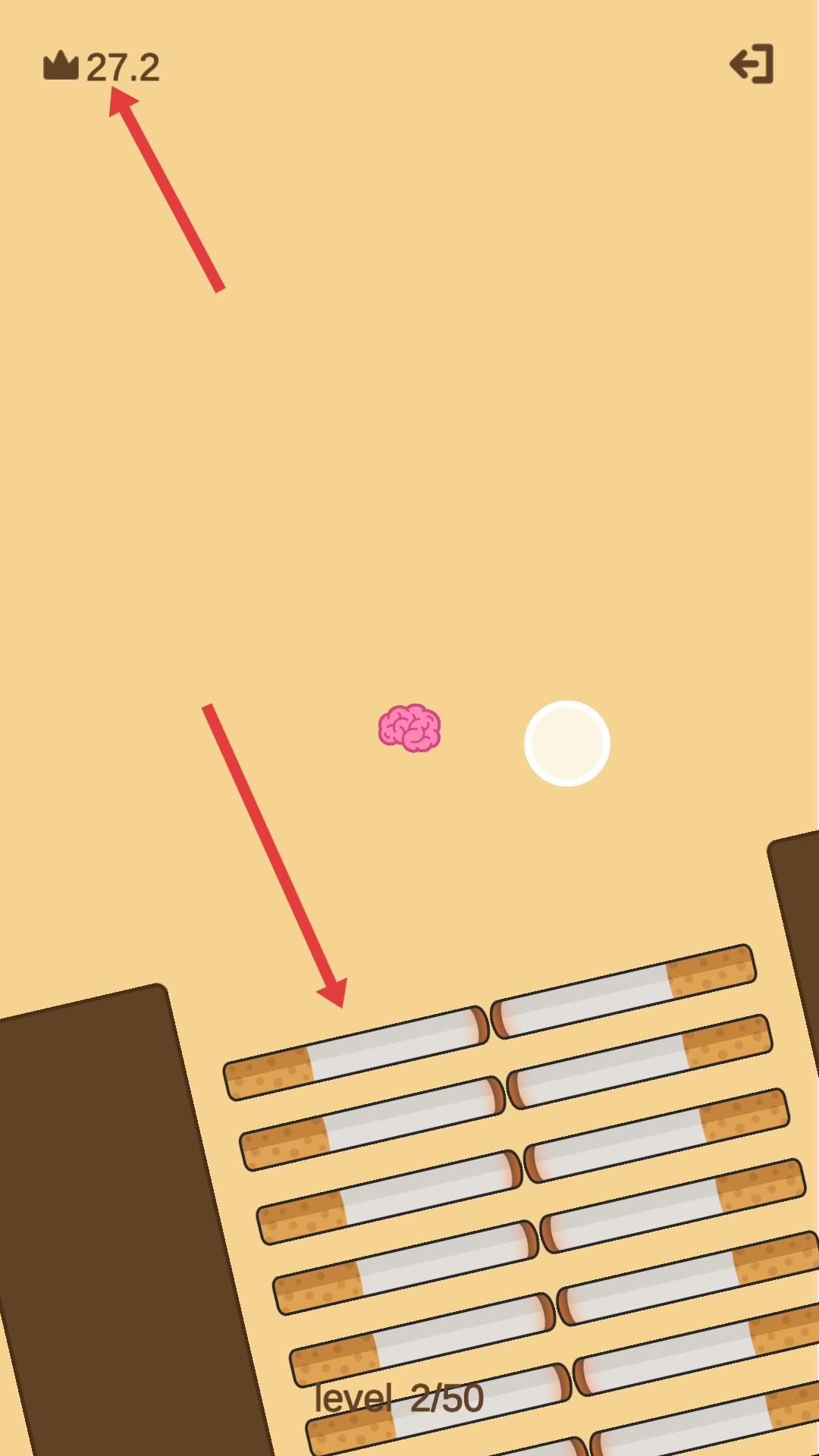 3、大腦需避開下方的香煙,這些是傷害大腦的障礙物,小心移動,持續(xù)保護大腦,提升分數(shù)。