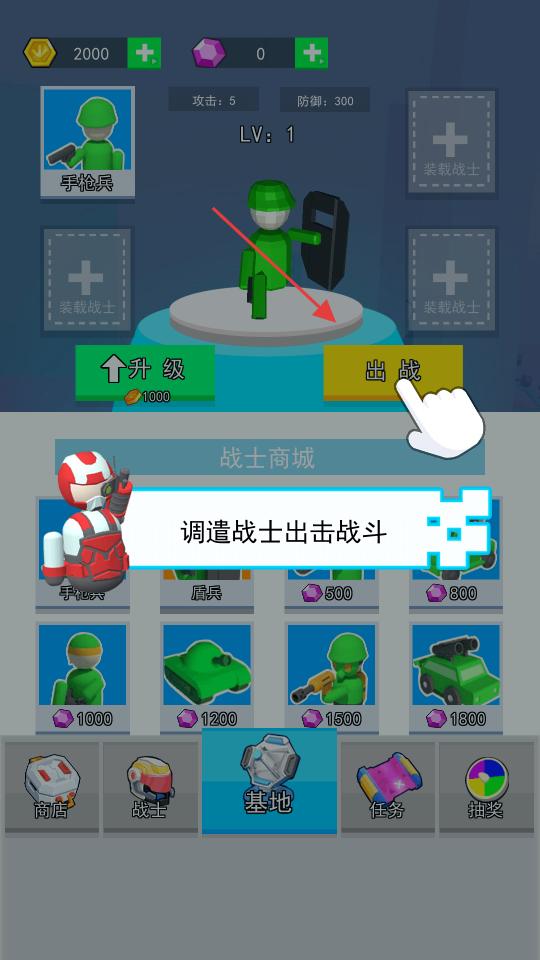 2、游戲的戰(zhàn)士界面,游戲頁面提示調(diào)遣戰(zhàn)士出擊戰(zhàn)斗,點(diǎn)擊出戰(zhàn),進(jìn)入戰(zhàn)斗頁面。