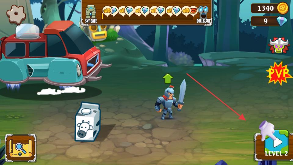 3、游戲場景里戰(zhàn)士時刻準備著,右側(cè)LEVEL2的按鈕提示可開啟第二關(guān),上方顯示著金幣和鉆石等資源數(shù)量。