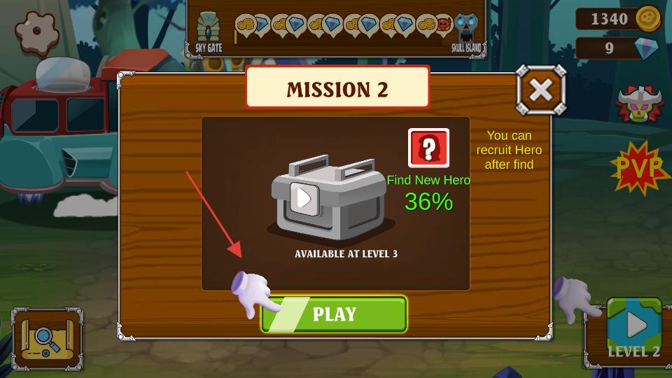 4、該界面是任務(wù)2,找到新英雄進度百分之36,等級3可用,點擊PLAY按鈕可進行任務(wù)。